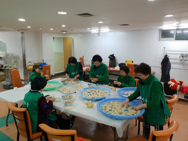 경기 하남시 신장1동 새마을부녀회는 최근 신장1동 행정복지센터에서 사랑의 만두 빚기 행사를 개최했다. 이날 새마을부녀회원들은 직접 손으로 정성껏 빚은 만두와 떡국떡, 사골국물을 준비해 기초생활수급자 및 차상위계층 등 지역내 어려운 이웃 30여가구에 전달했다. 사진은 참여자들이 만두를 빚고 있는 모습. (사진제공=하남시청)
