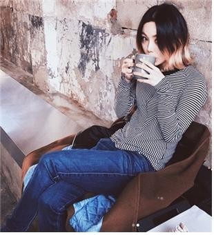 미료는 자신의 인스타그램에 사진을 올렸다. 미료는 의자에 앉아 음료를 마시고 있다. 줄무늬 셔츠를 입고 청바지를 입은 미료의 자연스러운 아름다움이 돋보인다.