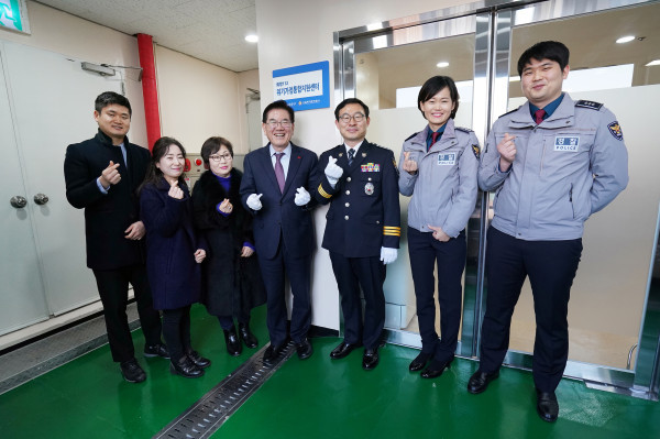 동대문구와 동대문경찰서가 지난 25일 오후 2시 ‘동대문구 위기가정 통합지원센터 업무협약 및 개소식’을 진행했다. 사진은 개소식에 참석한 유덕열 구청장(가운데)이 마경석 동대문경찰서장 및 관계자들과 기념촬영을 하고 있는 모습. (사진제공=동대문구청)