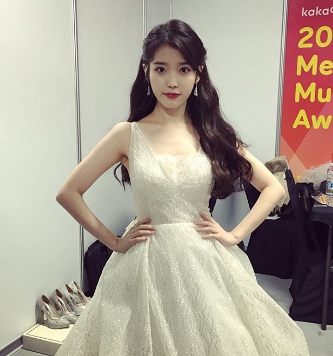 가수 아이유가 우아한 드레스로 여신미를 뽐냈다.