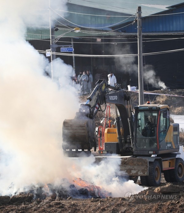 구제역 확진 판정을 받은 경기도 안성시의 한 젖소농가에서 29일 오전 방역 관계자들이 살처분 후 정리작업을 하고 있다.