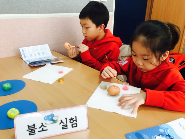 서울 은평구보건소 구산지소가 겨울방학을 맞아 지역내 초등학생의 올바른 구강 건강습관 형성을 위해 ‘3355 모여라! 구강건강체험 프로그램’을 오는 2월28일까지 개최한다. 사진은 체험에 참여한 아이들이 불소실험을 하고 있는 모습. (사진제공=은평구청)