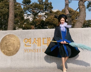 공개된 사진 속 김진아는 모교인 연세대학교 졸업사진에서 작은얼굴에 아름다운 미모를 뽐내고 있다.
