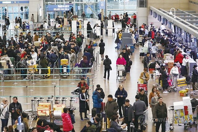 설 연휴를 앞둔 31일 오전 인천국제공항 출국장이 이용객들로 붐비기 시작하고 있다.