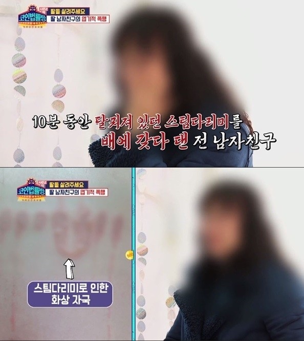 피해자의 어머니는 "딸이 전 남자친구에게 폭행을 당했다. 이틀에 한 번씩 지압훌라후프로 폭행을 하고 10분동안 스팀다리미를 배에 갖다 대는 등 학대를 했다"고 밝혔다.