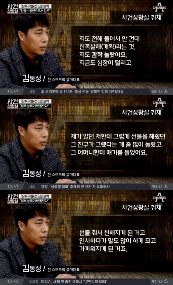 지난 달 김동성은 채널A '사건상황실'과의 인터뷰를 통해 A씨에게 고가의 선물을 받으면서 내연 관계를 맺었는지에 대해 "그 친구(A씨)가 시계를 사준 것은 맞다. 하지만 팬으로서 시계를 사준 것"이라며 "자기는 중학교 때부터 (나의) 팬이었다면서 그 정도는 충분히 해줄 수 있다고 얘기했다"고 밝혔다.