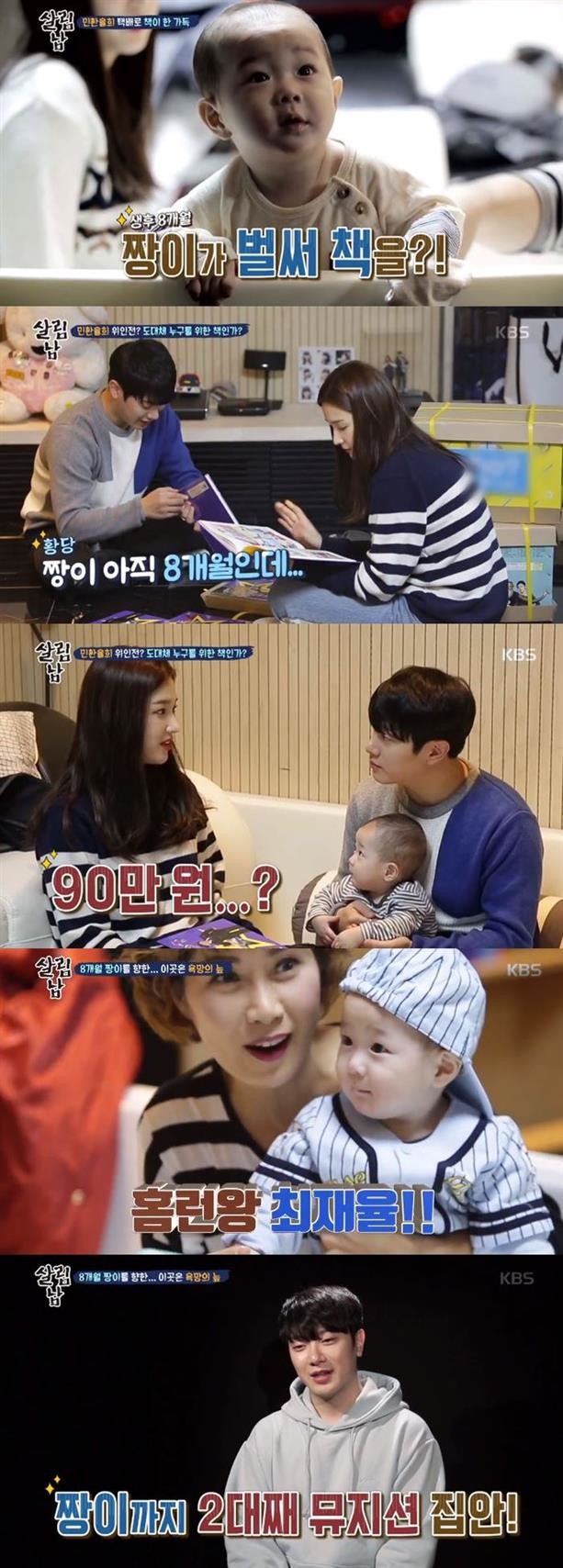 율희는 아들 짱이를 위해 위인전을 구입했다. 최민환은 “짱이 아직 8개월인데 벌써 책을 읽냐”고 되물었다. 율희는 “나도 어렸을 때 책을 많이 읽어서 공부 엄청 잘했다. 학교 다닐 때 반에서 10등에서 15등”이라며 위인전을 구입한 이유를 밝혔다.