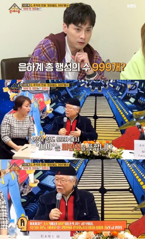 최근 방송된 KBS 2TV 예능 '옥탑방의 문제아들'에서는 일본 애니메이션 시리즈 '은하철도 999'가 40여년 만에 소환됐다. '999'의 의미를 묻는 퀴즈에 대중들의 관심이 모아진 것.