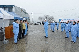 | ▲ ※사진설명: 3일, 창녕축협경제사업소에서 구제역 차단 특별방역 발대식을 가지고 있다. | ||