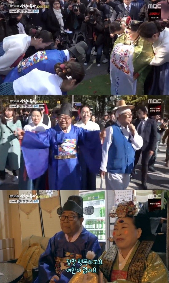 최근 방송된 MBC '사람이 좋다'에서는 송해와 전원주가 전통 혼례를 올리는 장면이 전파를 탔다.