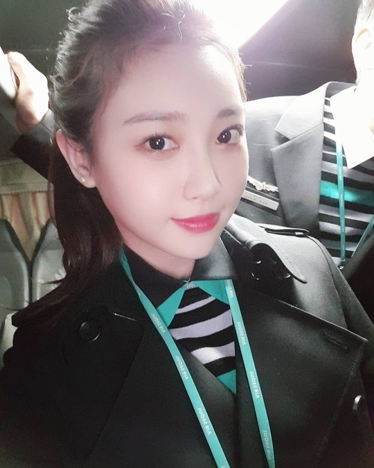 사진 속 유라는 승무원 복장을 하고 단아한 미모를 뽐내 경탄을 자아냈다는 후문.