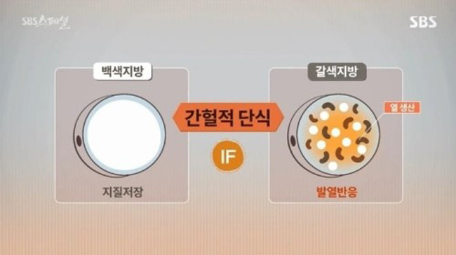 성훈기 교수는 공복으로 몸에 나쁜 백색 지방이 몸에 좋은 갈색 지방으로 바뀌는 것을 발견했다고 강조했다. 갈색 지방은 몸에 축적되는 백색 지방과는 달리 열을 생산하고 몸 안에서 소모되는 지방이다.