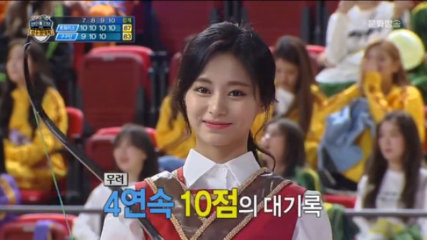 트와이스 쯔위가 ‘아육대’ 여자 양궁에서 신궁의 솜씨를 뽐내며 팬들의 마음을 사로잡았다.