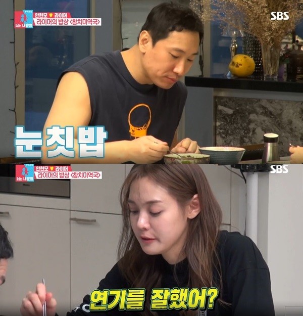 식사하는 과정에서 안현모는 "결혼 전 자신과 입맛이 같았는데 지금은 너무 다르다"며 라이머를 노려봤다.