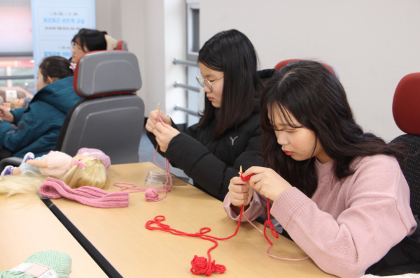 경기 양주시에 위치한 양주청소년문화의집은 최근 지역내 청소년 50명을 대상으로 겨울방학 프로그램 '문집에서 겨울나기'를 진행했다. 사진은 '포근포근 손뜨개교실'에 참여한 청소년들이 미니 목도리를 만들고 있는 모습. (사진제공=양주시청)