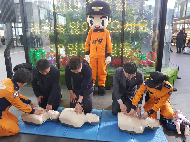 [시민일보=이대우 기자]강남구의회 이관수 의장이 최근 SRT 수서역을 방문하여 심폐소생술(CPR) 교육을 진행 중인 강남소방서 및 의용소방대 관계자들을 격려했다. 승객들 앞에서 직접 응급처치 실습에 나선 이관수 의장은 “심정지 환자는 초동대처가 무엇보다 중요한 만큼 주민 여러분께서도 응급환자 발생 시 주저하지 말고 응급처치에 동참해 주시기 바란다”고 말했다.