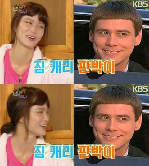 '컬투쇼' 송경아와 영화배우 짐캐리의 닮은꼴 표정이 비교돼 누리꾼들의 시선을 모으고 있다.