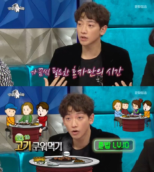 이날 비는 "가끔씩 혼자만의 시간이 필요하다. 아무하고도 이야기하고 싶지 않을 때가 있다. 고민에 빠져있거나, 나를 리프레시 하고 싶을 때가 있다"며 혼밥을 가끔 즐긴다고 밝혔다.