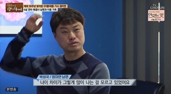 뿐 만 아니라 원미연의 남편은 "아내가 저보다 연상인 줄은 알고 있었는데 차이가 그렇게 많이 나는 줄은 몰랐다. 나중에 알고 보니까 나이 차이가 부담스럽더라. 그런데 그 때는 이미 너무 마음이 가있어서 되돌릴 수 없었다"고 고백해 웃음을 더했다. 그러면서도 원미연의 남편은 "요즘은 연상연하 부부가 보편화돼서 괜찮다"며 원미연에 대한 애정을 드러내기도 했다.