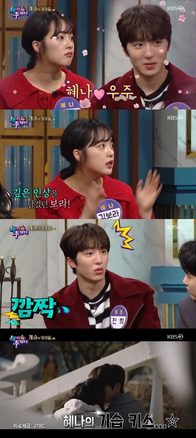 이날 김보라는 "찬희와 뽀뽀신 이후에 사과를 했다. 극 중에 우주를 좋아해서가 아니라 예서의 질투심 유발 때문에 뽀뽀를 했다. 혜나에게 너무 몰입해서인지 미안하더라. 그래서 사과했다"고 털어놨다.