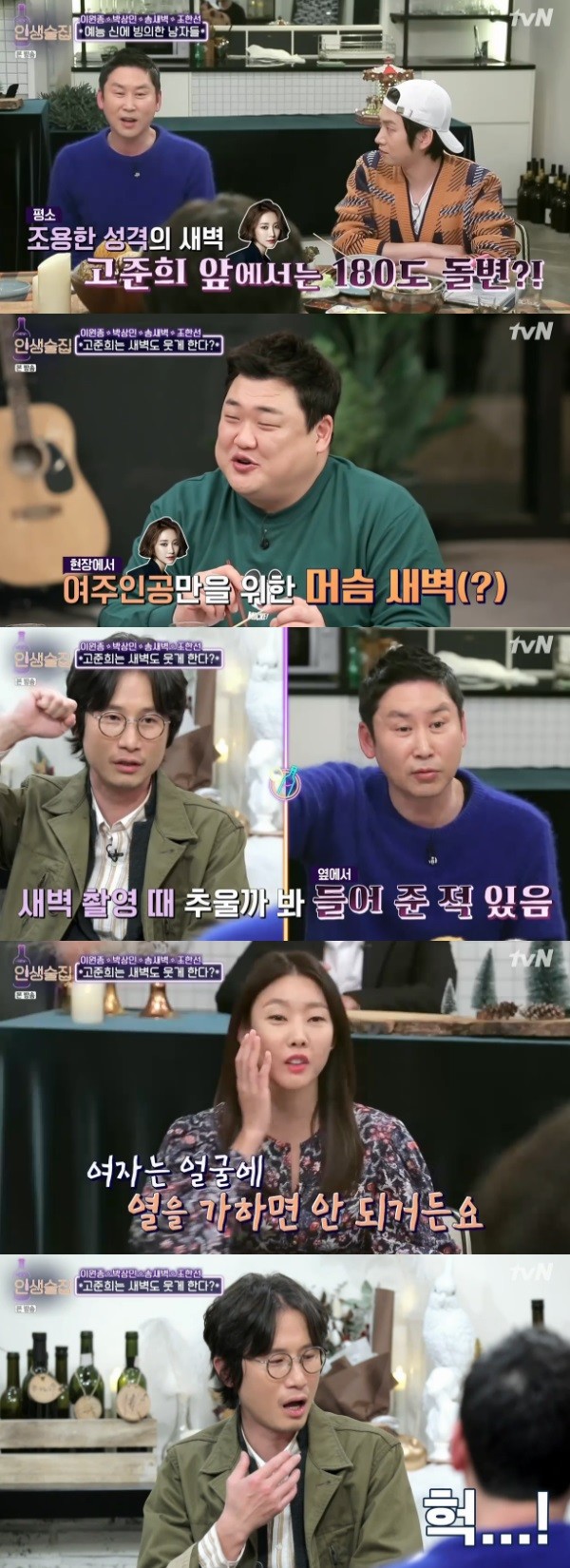 이날 MC 신동엽은 “조용한 성격의 새벽 씨가 고준희랑 촬영할 때는 180도 변한다던데요”라고 말문을 열었다. 김준현은 “여주인공만을 위한 머슴이라는 소문이 있다”라고 덧붙였다.