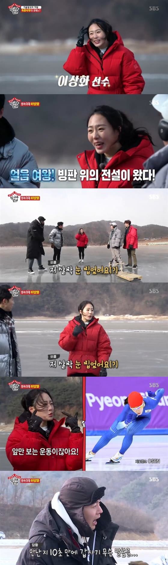 이날 멤버들은 빙판 위에서 이상화를 만나게 됐다. 이승기는 "'빙상계의 여신' 이상화 선수다"라고 소개했고, 양세형은 "되게 아름다우시다"고 감탄했다.