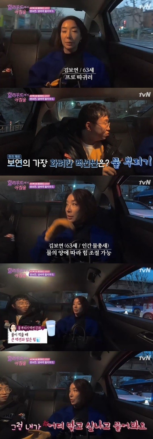 김보연은 “따귀는 정말 많이 때렸다”고 인정했다. 이어 박성광은 물을 뿌리는 액션 연기에 대해 또 물었고, 김보연은 “컵에 물이 얼마나 들어 있느냐에 따라서 다르게 해야 한다”며 물 뿌리는 연기의 노하우를 말했다.