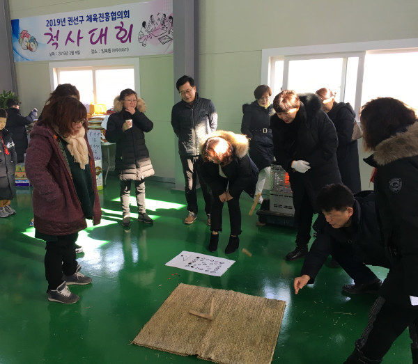 경기 수원시 권선구는 지난 9일 구 체육진흥협의회 주관으로 회원과 권선구민 100여명이 참석한 가운데 '정월대보름맞이 척사대회'를 개최했다. 사진은 대회 참여자들이 윷놀이를 하고 있는 모습. (사진제공=권선구청)