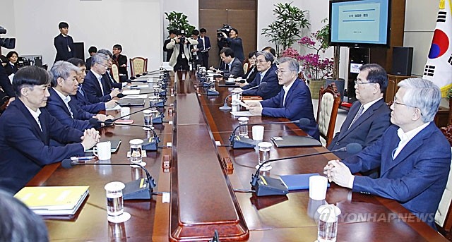 문재인 대통령이 11일 오후 청와대 여민관에서 수석ㆍ보좌관회의를 주재하고 있다.