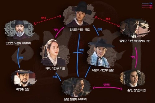 연잉군 이금(정일우 분)과 여지(고아라 분)-박문수(권율 분)-달문(박훈 분)은 조력관계로 이어져 있다.