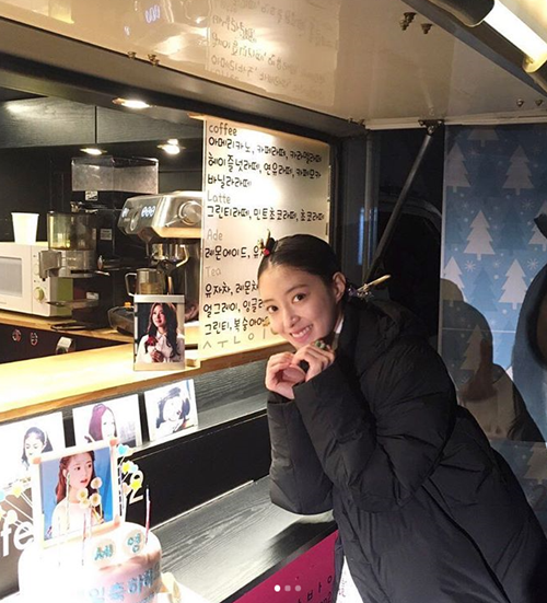 앞서 지난해 12월 이세영은 "팬카페 진이세영에서 사랑을 담아 보내주신 생일맞이 커피차와 케익들, 그리고 주말사용설명서 팀에서 보내주신 막뚱이 사랑 케익❤덕분에 생일을 행복하게 보냈습니다 ㅎㅎ 고맙고 감사합니다!"라는 글과 함께 한 장의 사진을 게재했다.