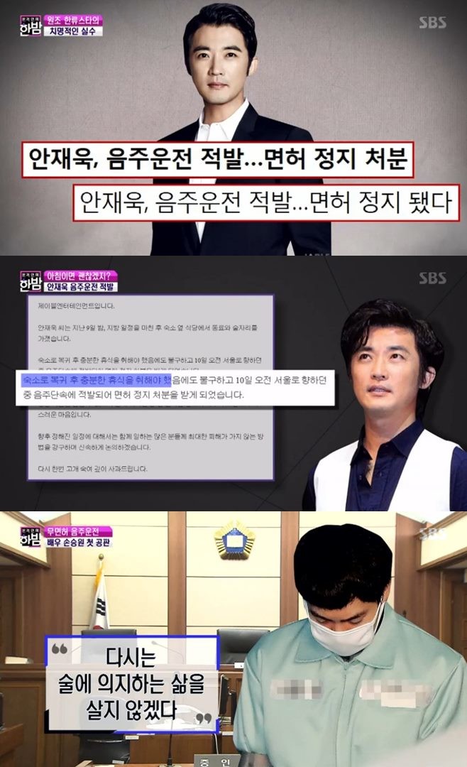 최근 방송된 SBS '본격연예 한밤'에서는 연예인 음주운전 적발 사건들이 전파를 탔다.
