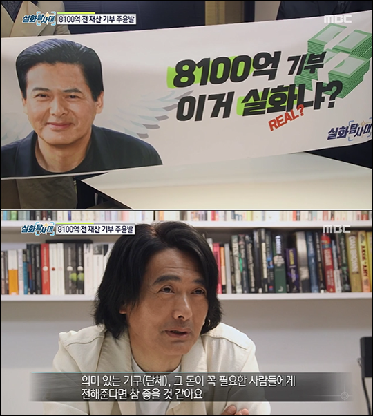 최근 방송된 MBC '실화탐사대'에서는 제작진은 '전재산 8,100억 원 기부, 실화냐'라는 플랜카드를 준비하고 주윤발을 만나는 모습이 전파를 탄 바 있다.