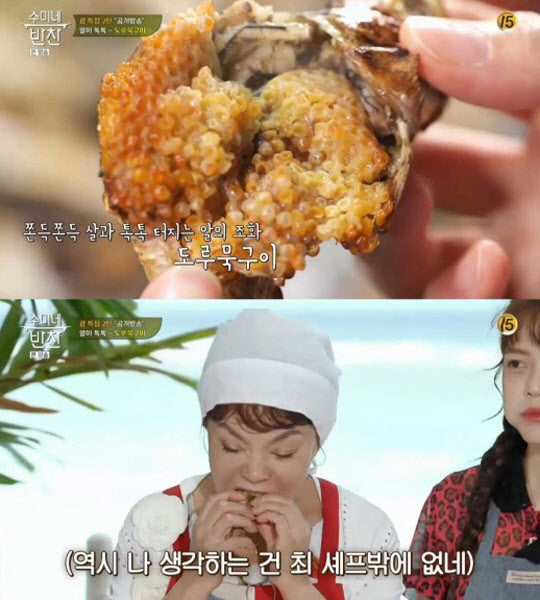 도루묵은 알이 꽉찬 상태였고, 먼저 맛을 본 김수미는 "알이 살아있다. 톡톡 터진다. 이 맛이 먹는다"고 감탄했다.