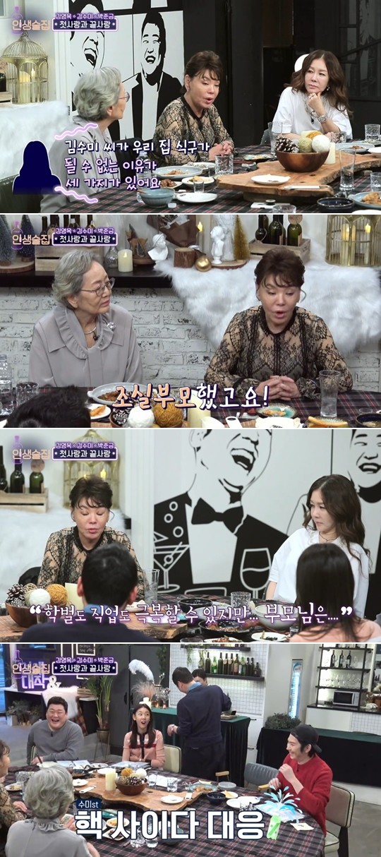 최근 방송된 케이블 tvN '인생술집'에서는 김수미가 첫 남자친구의 어머니에게 사이다를 날린 일화가 전파를 탔다.