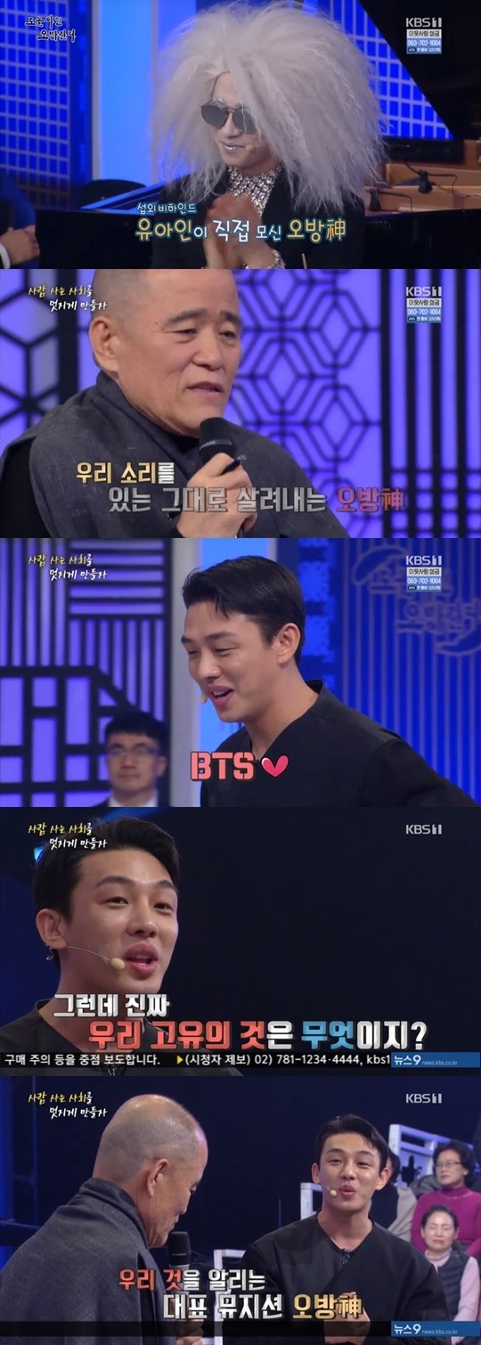 과거 첫 방송된 KBS1 교양 프로그램 '도올아인 오방간다'에서는 철학자 도올김용옥과 배우 유아인, 이희문 명창과 연주 밴드 프렐류드가 출연했다.