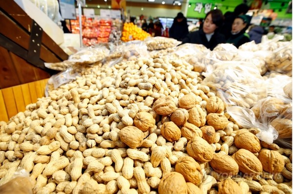 정월대보름을 앞둔 17일 서울 롯데마트 서울역점을 찾은 시민들이 호두, 땅콩 등 부럼용 견과류를 살펴보고 있다. '부럼 깨기'는 정월 대보름날(음력 1월 15일) 이른 아침에 한 해 동안의 각종 부스럼 예방과 건강 등을 기원하기 위해 밤, 호두, 잣 등 견과류를 어금니로 깨무는 우리나라 풍속이다.
