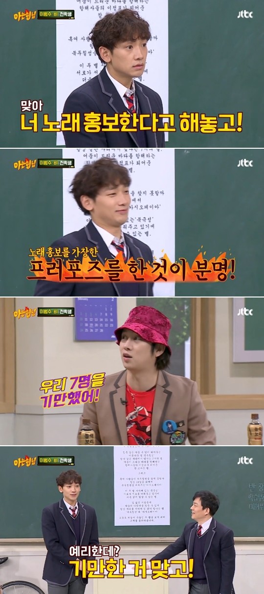 '아는형님' 비가 '아형' 프로포즈를 인정해 시청자들에게 웃음을 선사했다.