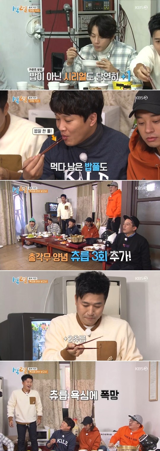 '1박 2일' 김종민이 욕심으로 가득한 식탐으로 시청자들에게 웃음을 안겼다.