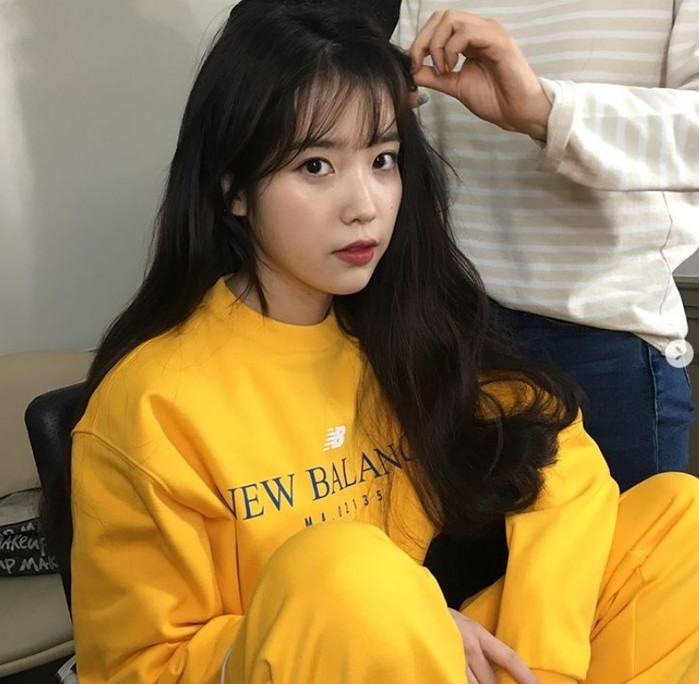 공개된 사진 속 아이유는 노란색 운동복을 세트로 맞춰 입고 헤어를 손질 받으며 카메라를 응시하고 있다. 운동복 색과 대조되는 까만색 긴 웨이브 헤어와 반짝반짝 빛나는 까만 눈망울이 그의 인형 미모를 더욱 돋보이게 한다.