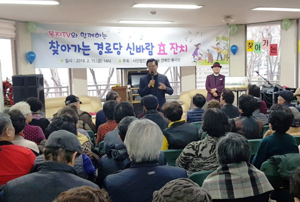 성장현 서울 용산구청장이 최근 이촌동 강촌아파트 경로당에서 열린 '신바람 효잔치' 행사에 참석했다. 이번 행사는 지역내 경로당 및 자치 프로그램 이용 노인 등 80명이 참석했다. 사진은 성 구청장이 노인들에게 인사말을 전하는 모습. (사진제공=용산구청)