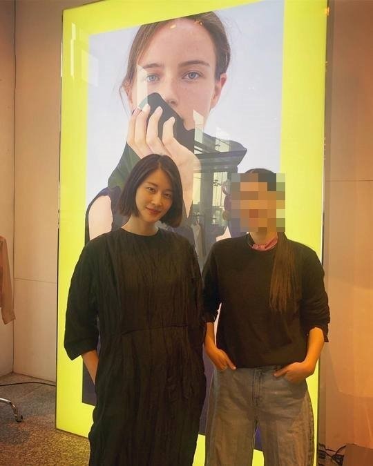 공개된 사진 속 이현이는 블랙 색상의 헐렁한 원피스를 입고 지인과 카메라를 응시하고 있다.