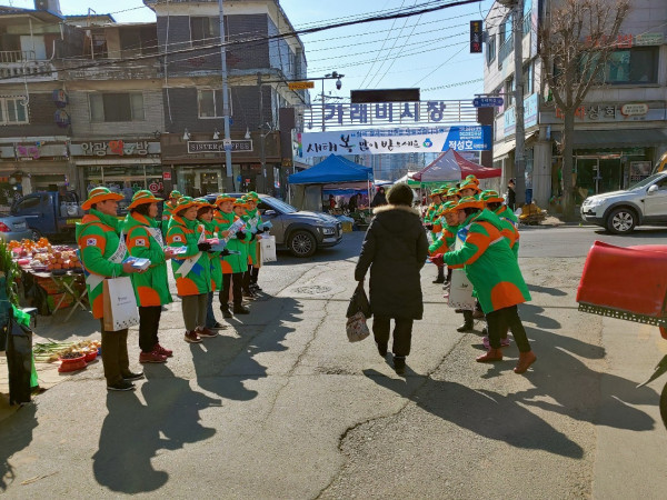 경기 양주시는 최근 광적면 가래비시장 일원에서 시 자율방재단과 합동으로 '겨울철 자연재난 예방 캠페인'을 실시했다. 사진은 참여자들이 한파 피해예방 홍보물을 배부하고 있는 모습. (사진제공=양주시청)