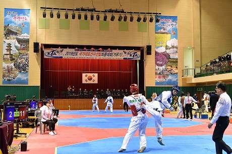 | ▲ ※사진설명: 지난 11일, 창녕군민체육관에서 2019 국가대표선수선발최종대회(겨루기)가 개최되고 있다. | ||