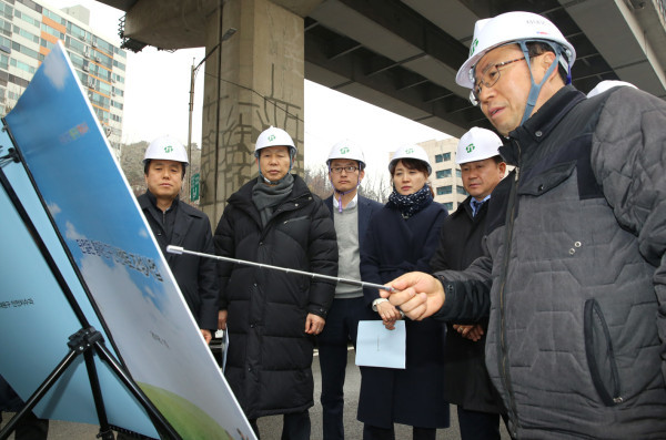 | ▲ 서대문구의회 제249회 임시회 기간 중 재정건설위원회 소속 의원들이 홍제천 산책로 조성 공사장을 방문, 현장 관계자로부터 사업현황을 청취하고 있다. (사진제공=서대문구의회) | ||