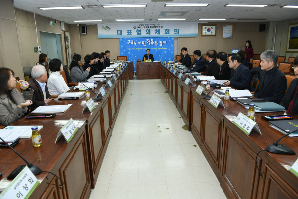 경기 구리시는 지난 18일 시청 상황실에서 시 지역사회보장협의체 주관으로 대표협의체 심의 회의를 개최했다. 이날 회의는 민간 위원장 선출과 올해 지역사회보장 연차별 시행 계획 수립을 위해 마련됐다. 사진은 안승남 시장과 관계자들의 회의 모습. (사진제공=구리시청)