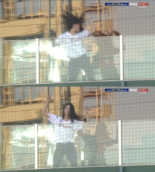 이날 시구를 마친 미주는 자리를 옮겨 경기를 관람했다. 하지만 미주는 잠시도 가만히 있지 않았다. 넘치는 흥을 그대로 뿜어낸 것.