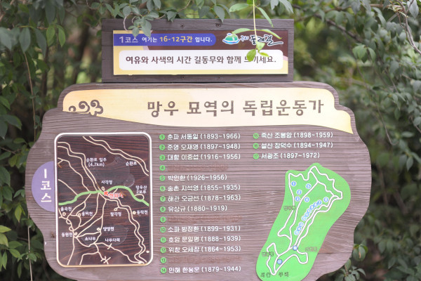 | ▲ 망우 묘역의 독립운동가 표지판. | ||