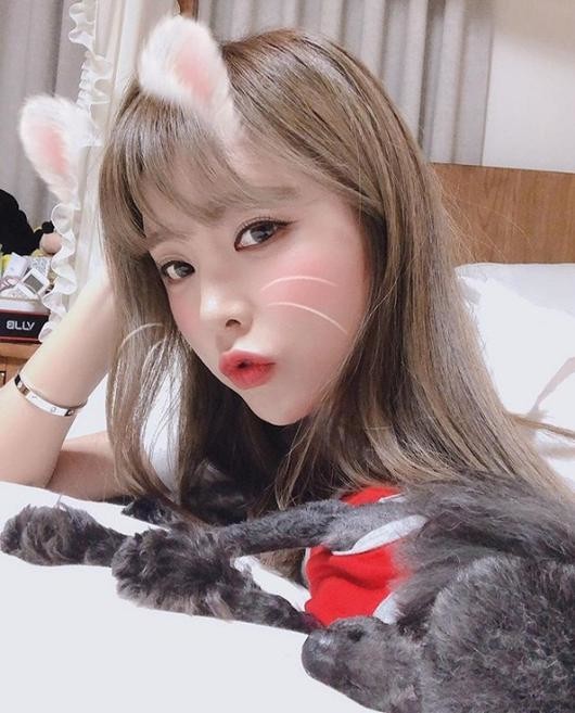 사진 속 홍진영은 애플리케이션을 활용해 귀여움을 극대화하고 입술을 쭉 내림어 섹시한 매력까지 덤으로 뽐냈다.