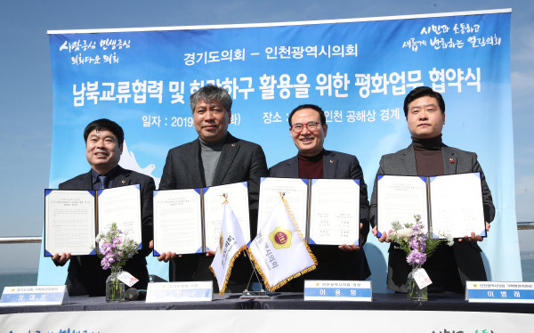 [인천=문찬식 기자] 인천시의회와 경기도의회가 남북교류협력 사업 및 한강하구 활용 등 공동추진 협력을 위해 26일 '평화업무 협약'을 체결했다.